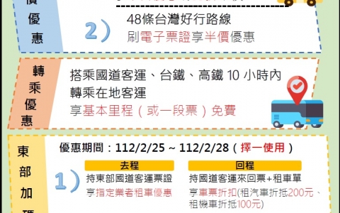 好康逗相報!112年228連假轉乘及好行半價優惠活動開始囉!