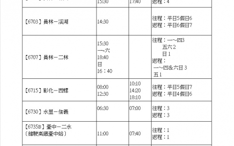 【6713】彰化-二林(往程):07:40(平日班次)→停開