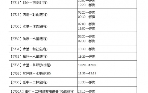 【6731】和社-水里(返程):19:20→停開