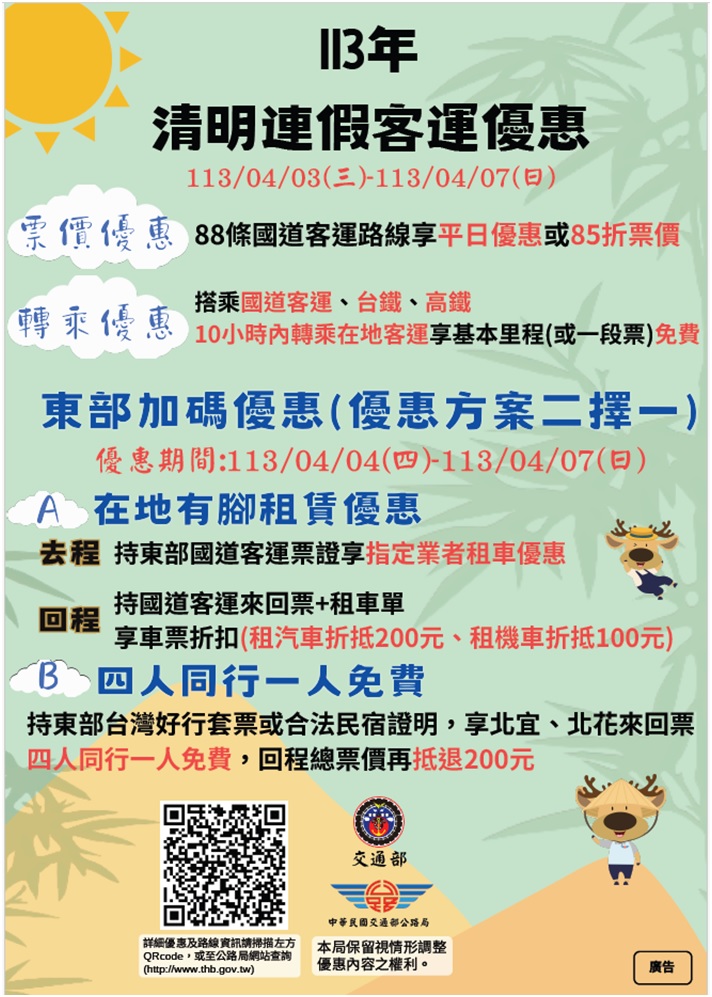 好康逗相報!113年清明連假轉乘及好行半價優惠活動開始囉!